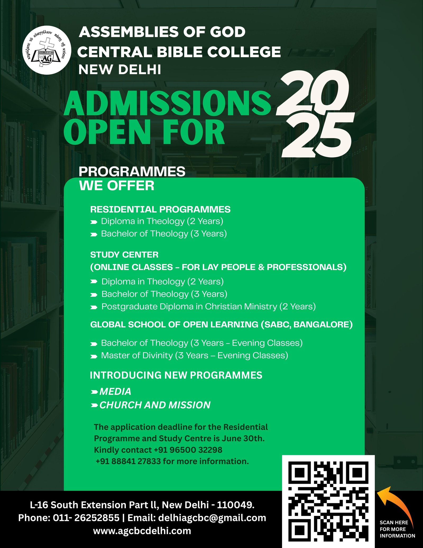 Central Bible College is a recognized theological institution of the Assemblies of God in India.
